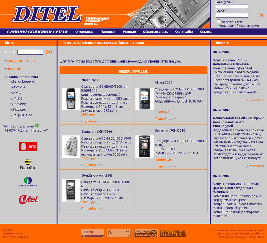 Ditel – сеть салонов сотовой связи в г.Нижневартовске. Сайт компании содержит информацию о товарах, новинках, новостях рынка сотовой связи.