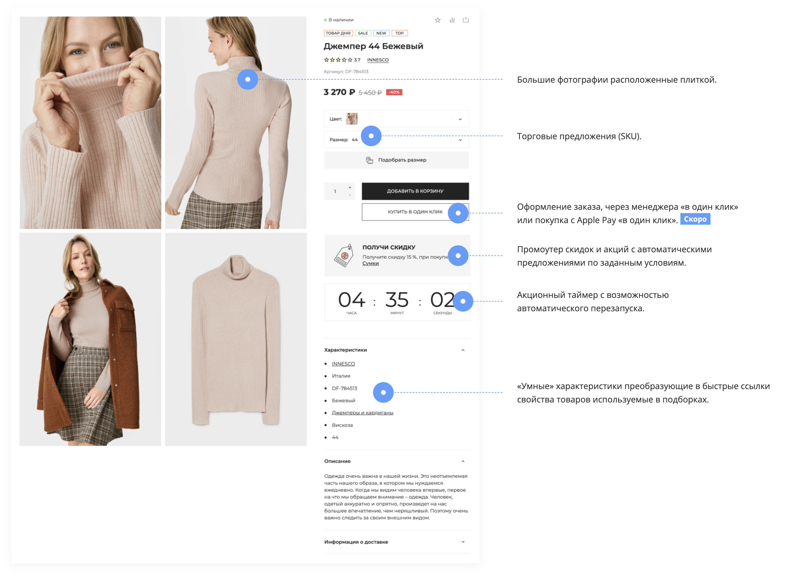 Товарная карточка, которую вы хотели. Создана по образу успешных fashion-магазинов.