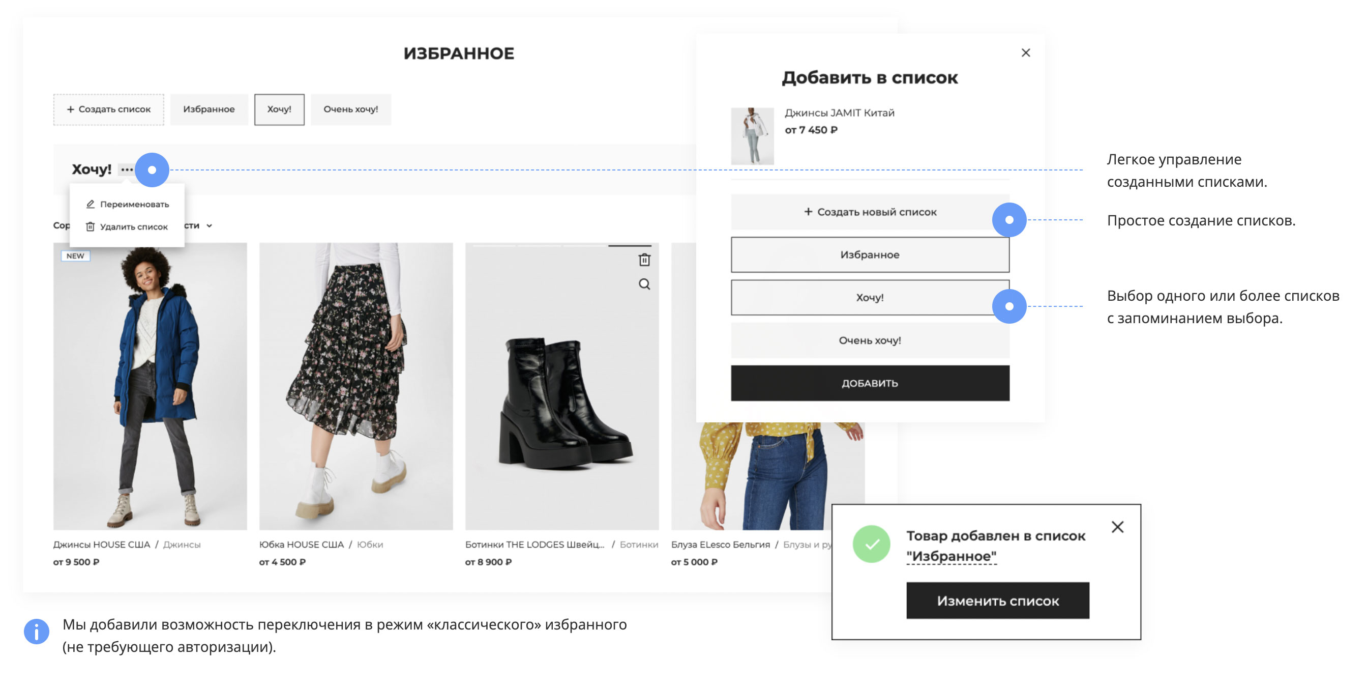 Ваши клиенты смогут сохранить понравившиеся товары в собственные списки
