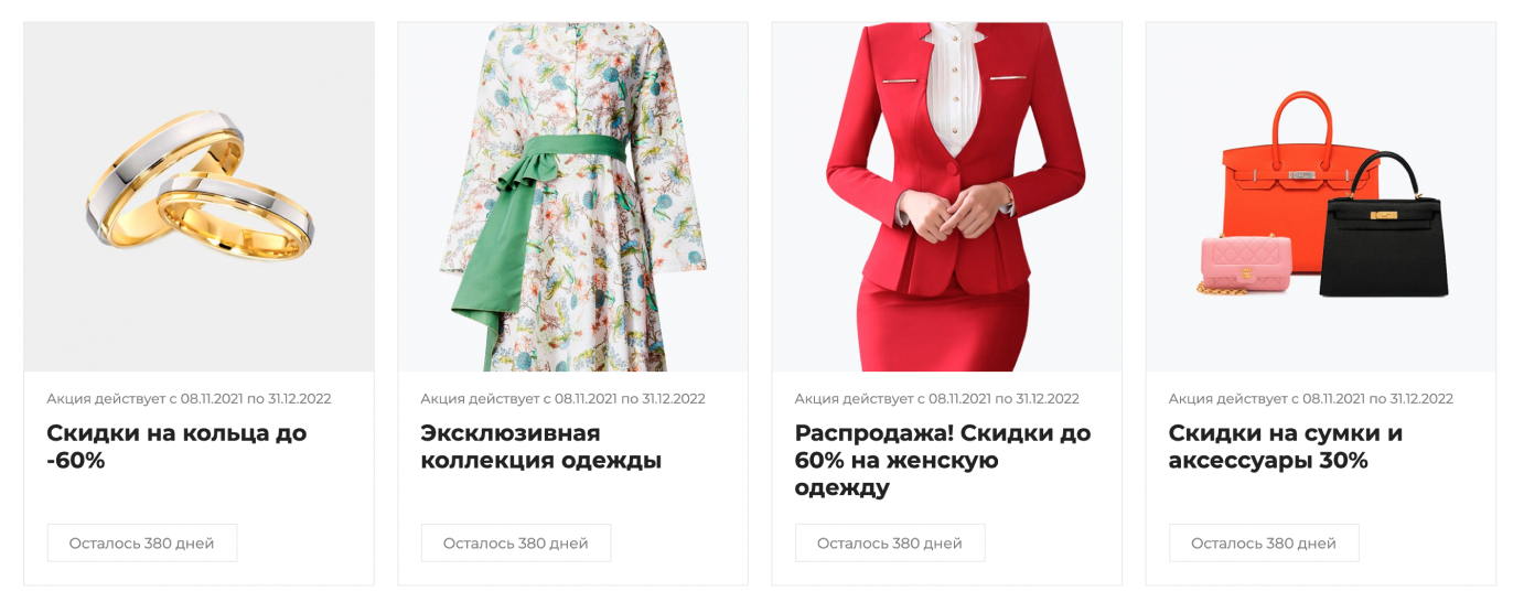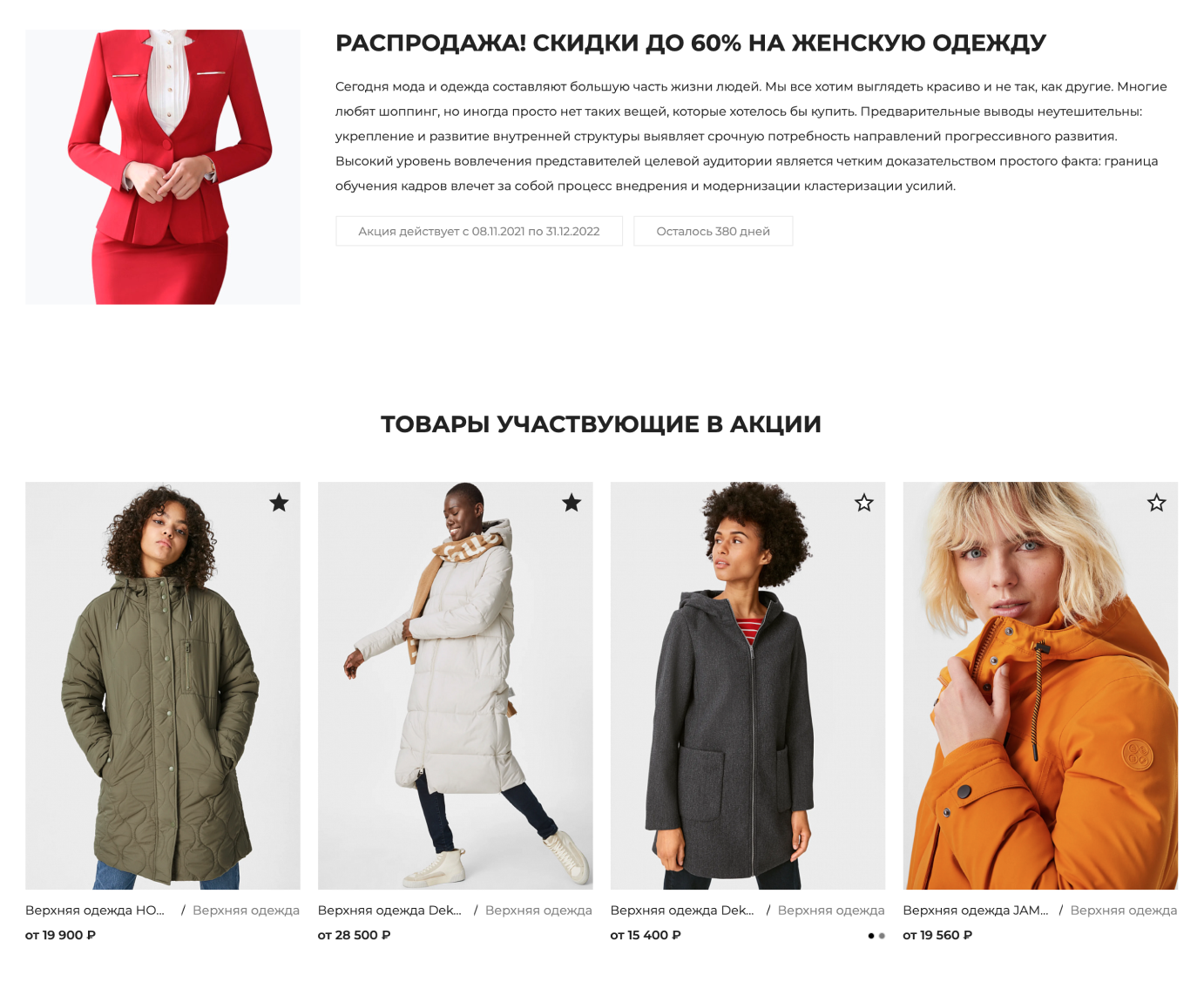 в магазине «Одежда.Fashion» реализован незаменимый раздел со списком акций.