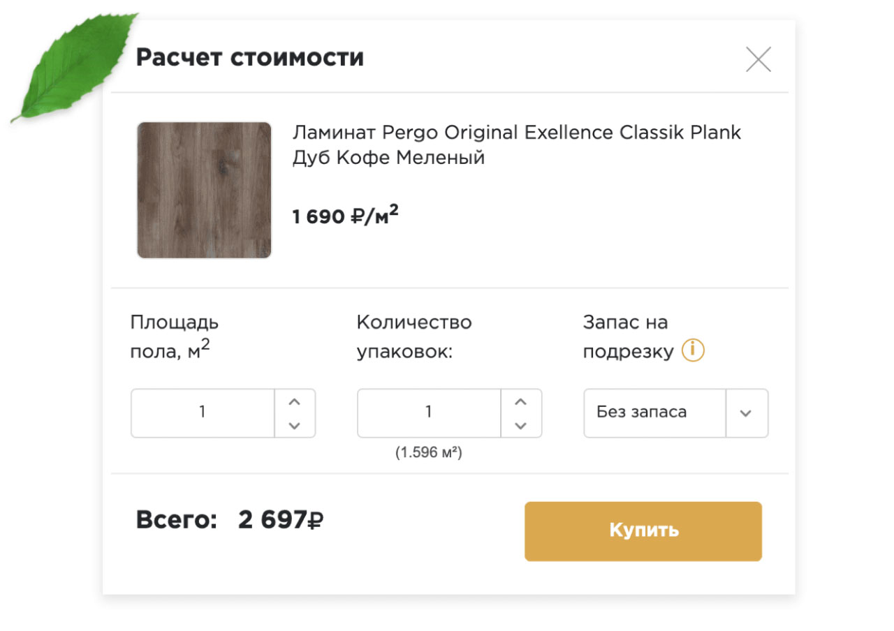 сколько потребует площадь его пола. Более того, предусмотрен и расчет