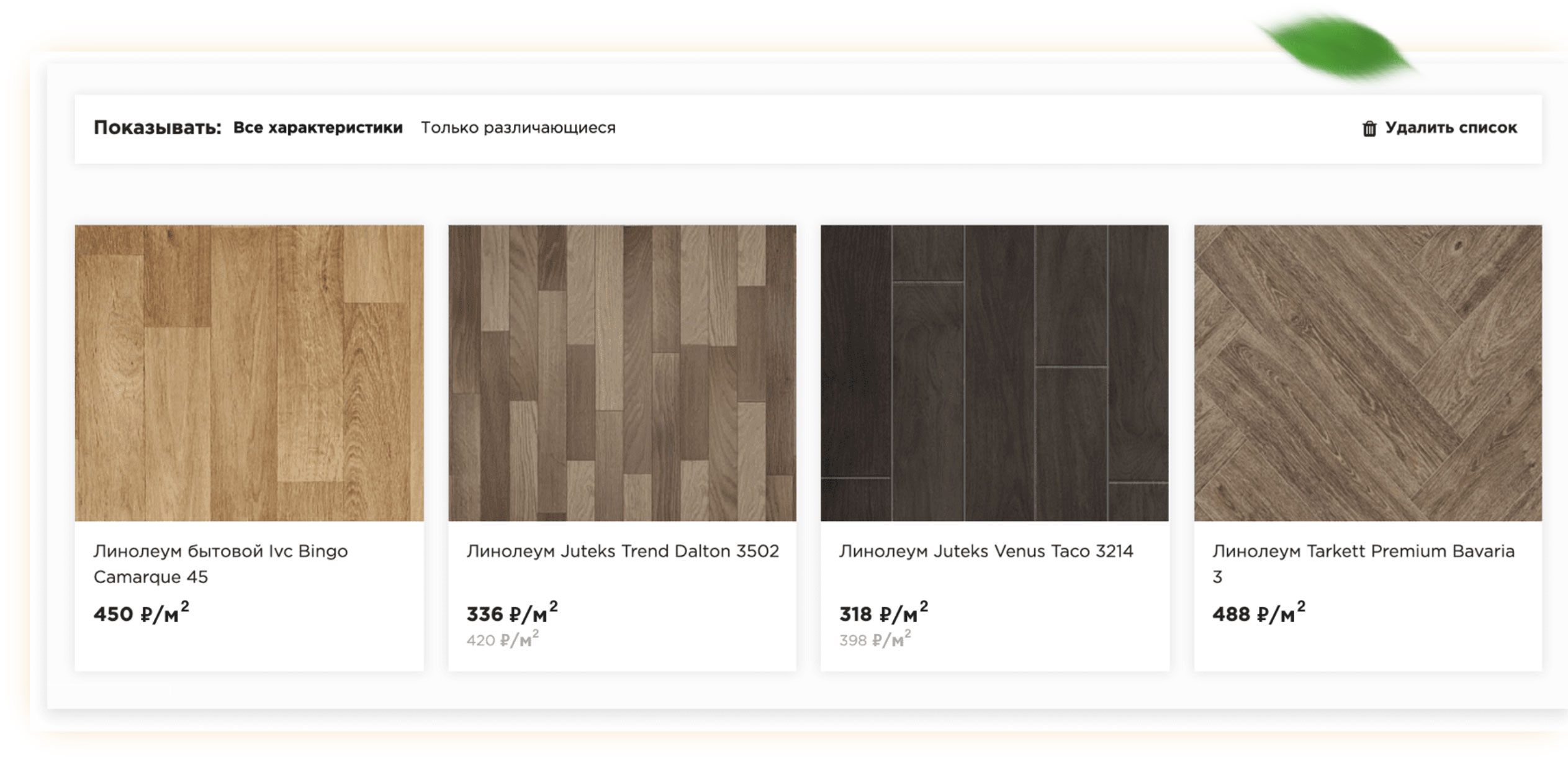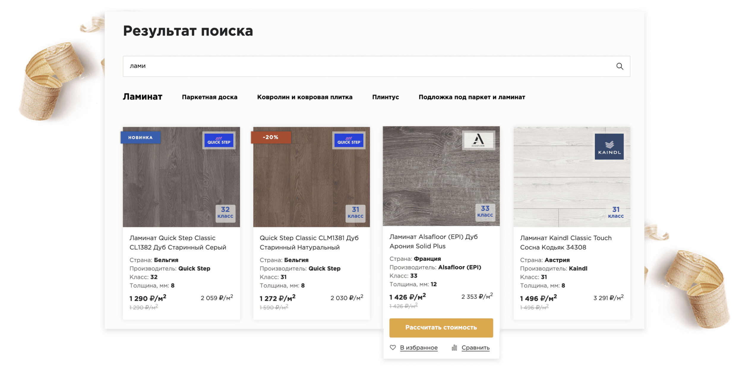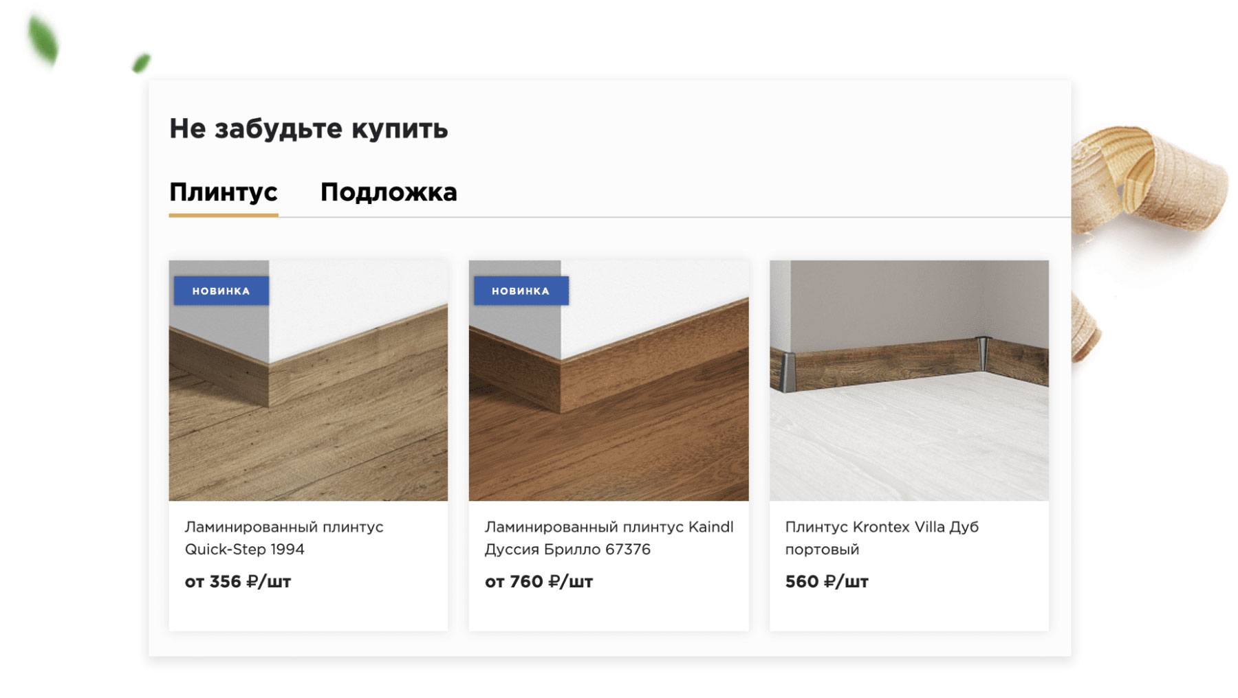 плинтуса, подложки и другие товары к выбранному напольному покрытию.