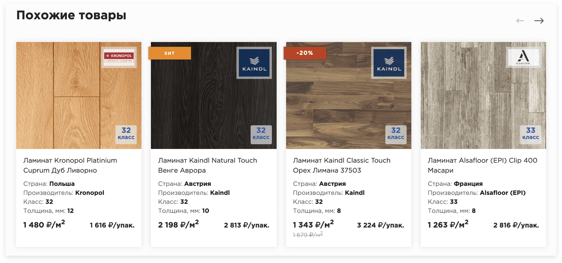 в зависимости от метража и способа укладки прямо на странице каталога