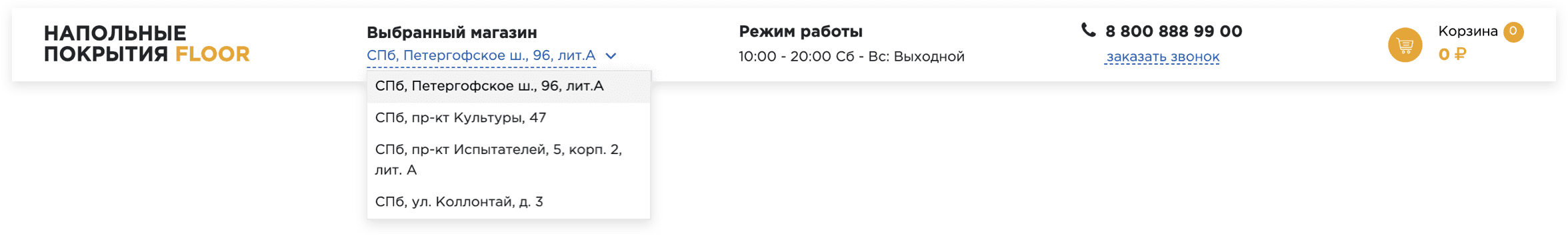 пользователь сможет выбрать подходящий магазин в шапке сайта