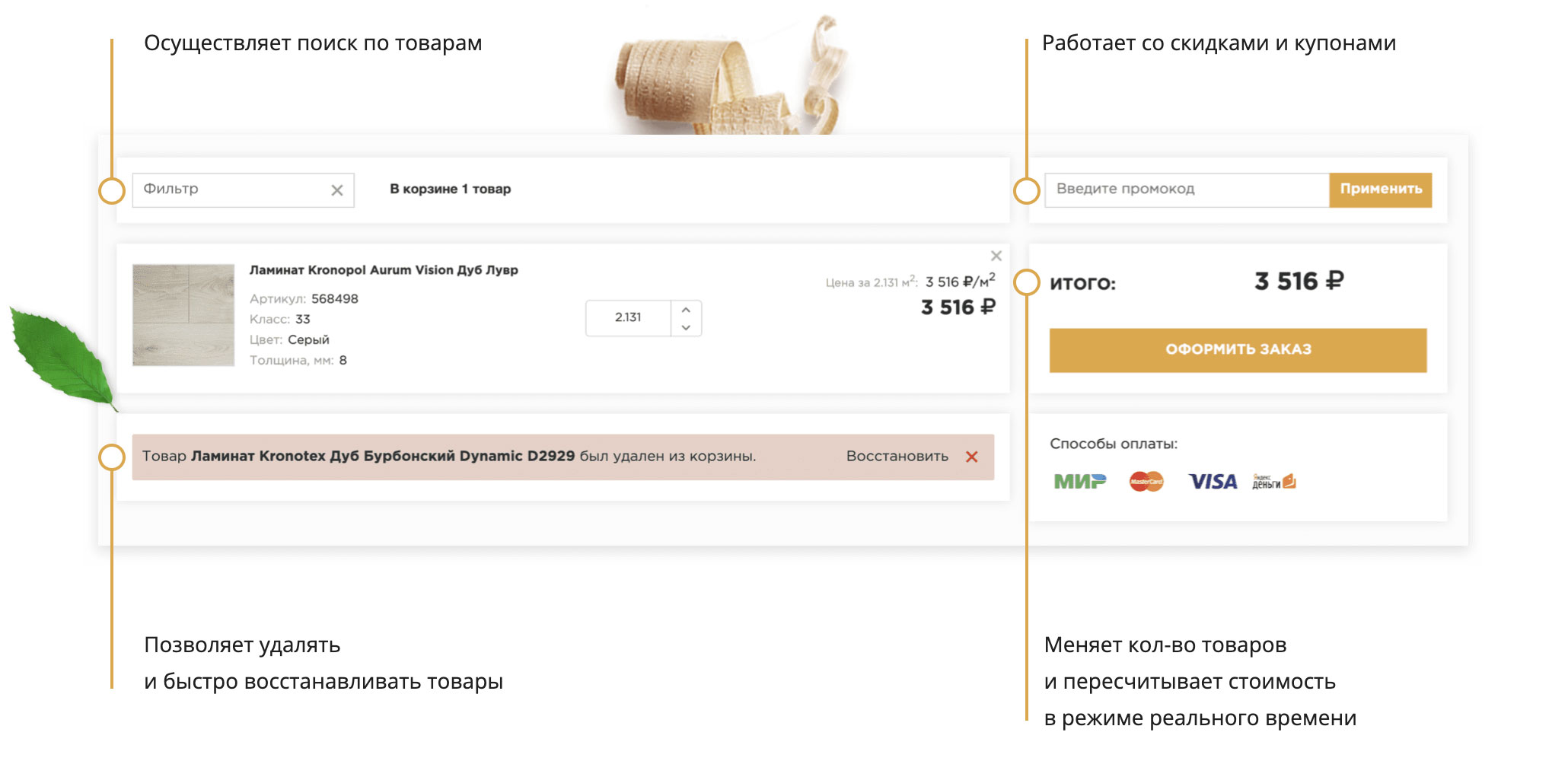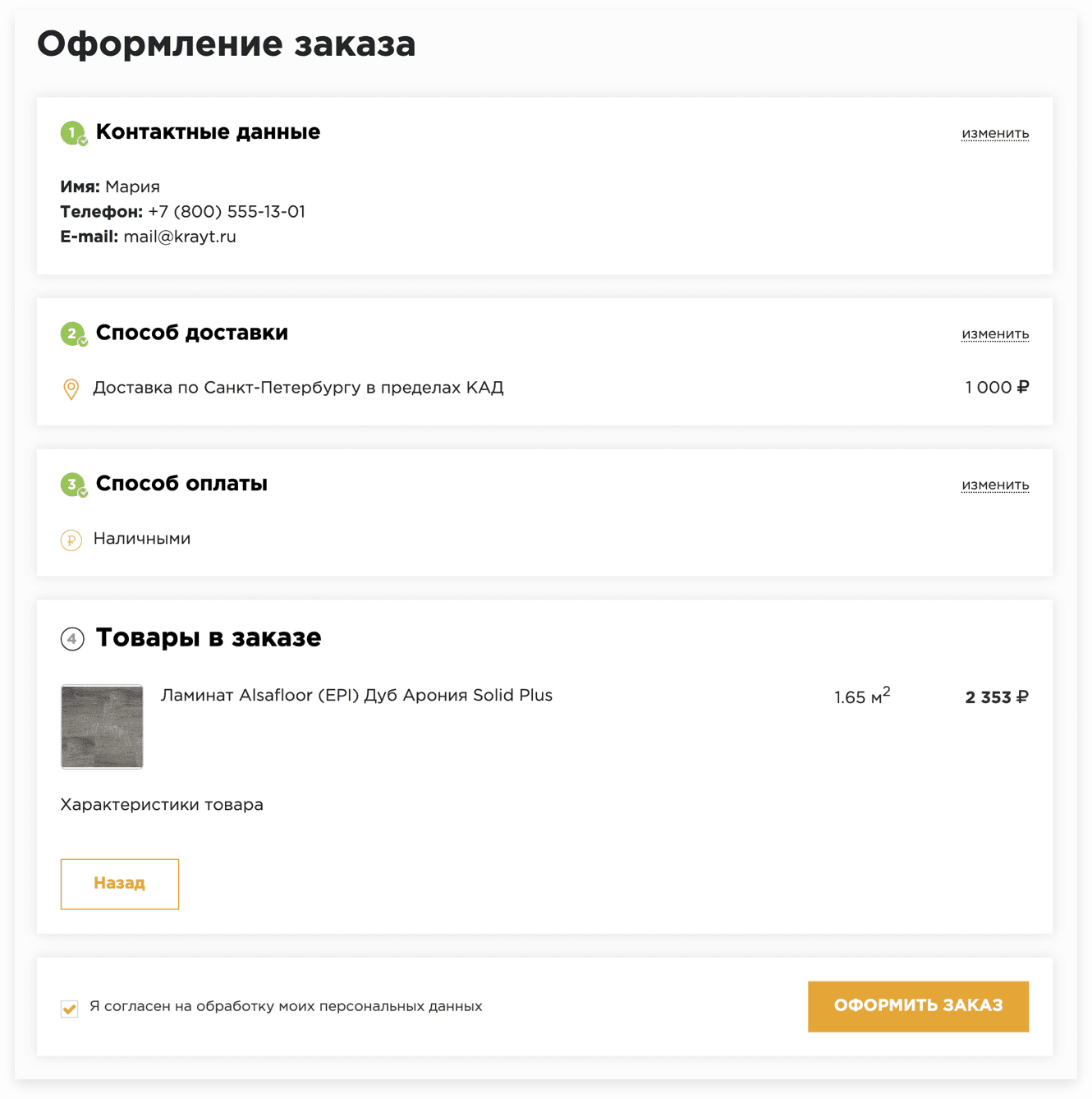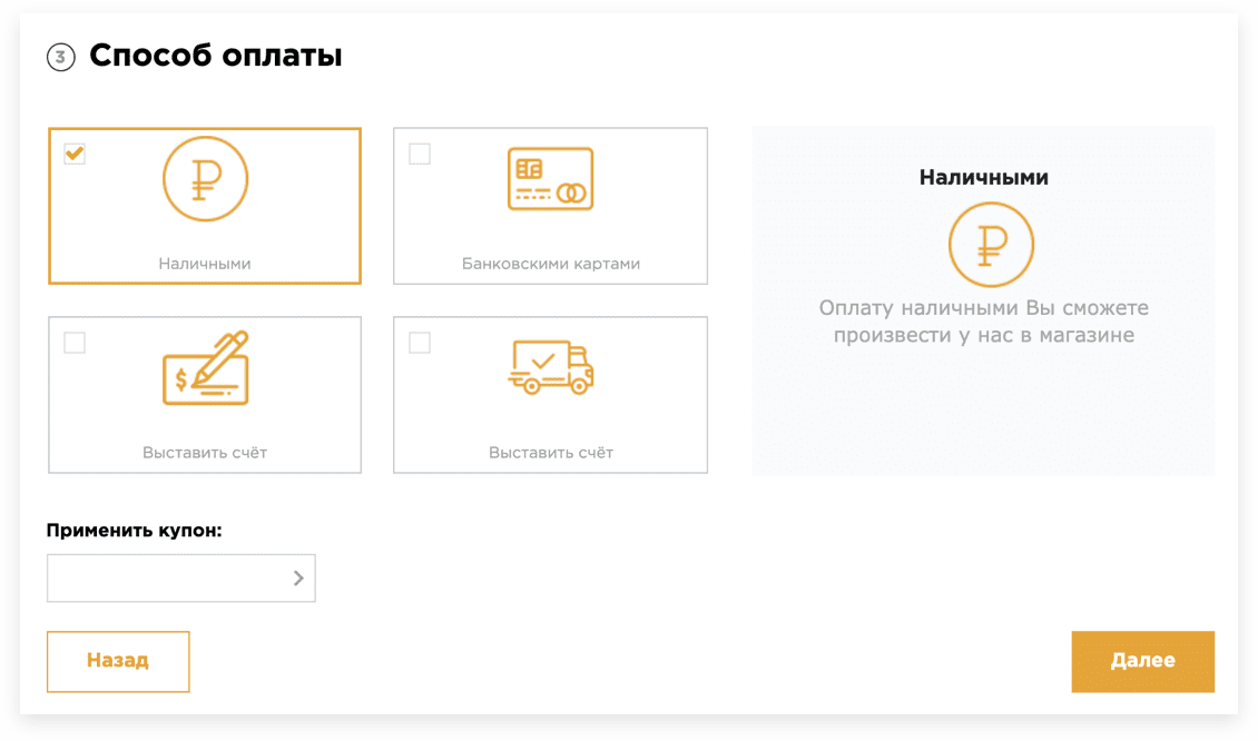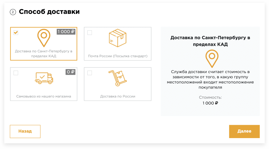 Оформление заказа позволяет за несколько шагов выбрать