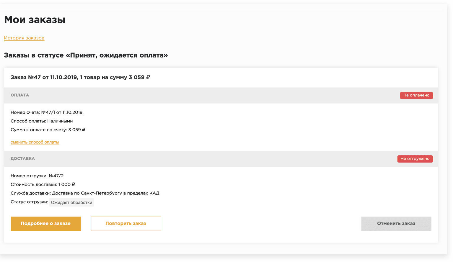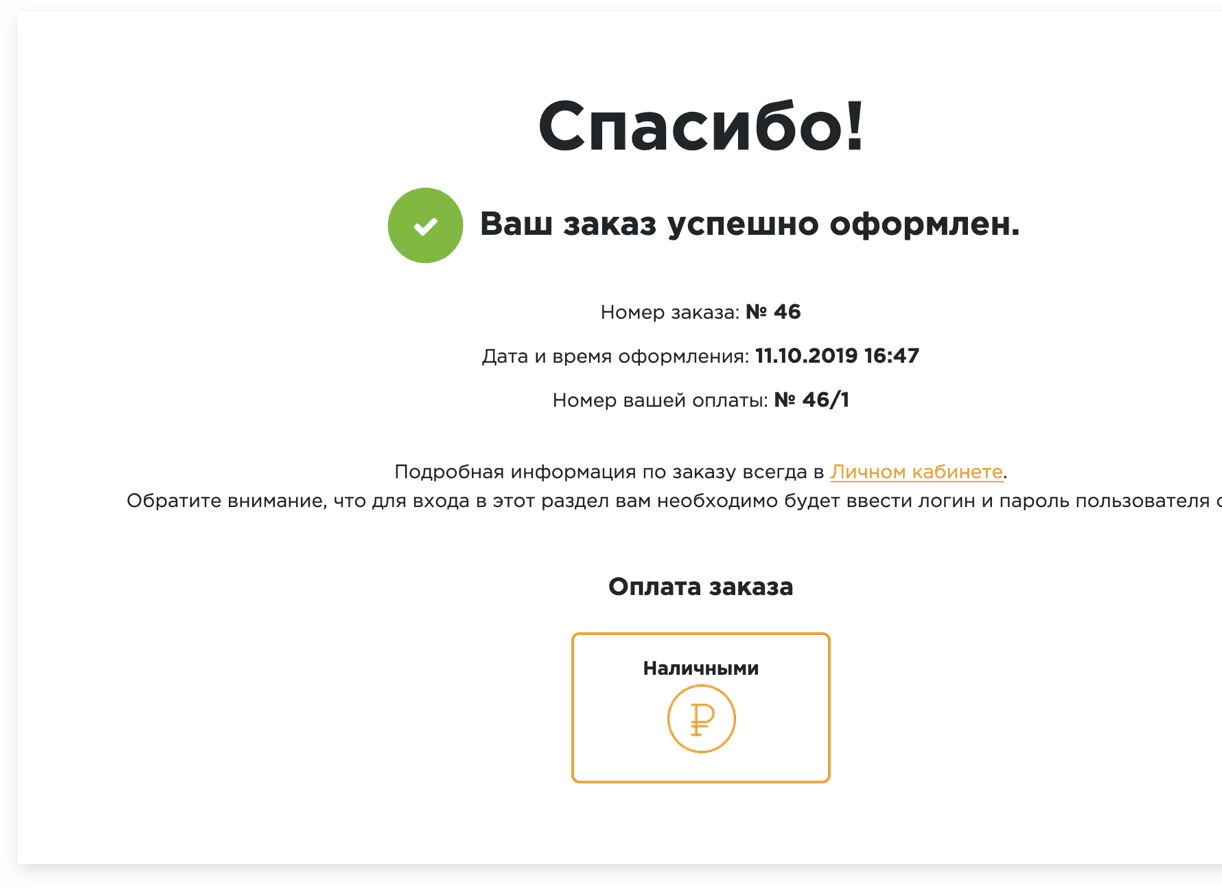 Личный кабинет позволяет следить за историей заказов, изменять способ оплаты,