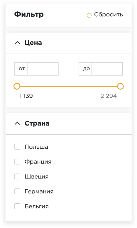Фильтр, позволяющий быстро отобрать необходимые товары
