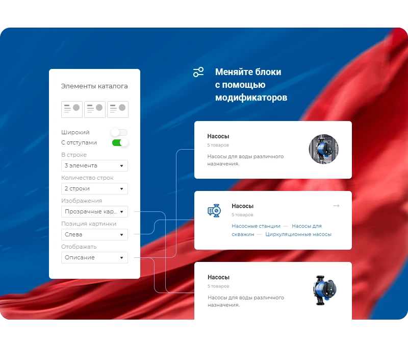 - Адаптирован под специфику бизнеса. Демоматериалы готового решения созданы с учетом потребностей инженерной отрасли. Продуманы все элементы: от детальных страниц проектов до проработанного каталога оборудования.