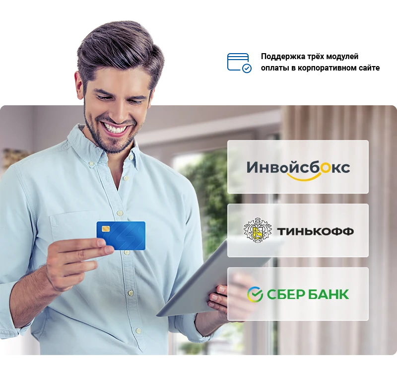 Принимайте оплату за проектирование и монтаж инженерных сетей. В решении подключена интеграция с системой приема платежей ИнвойсБокс. Также вы можете приобрести отдельно 2 модуля оплаты: «Интернет-эквайринг Сбербанк РФ (прием платежей)» и «Интернет-эквайринг Тинькофф прием платежей».