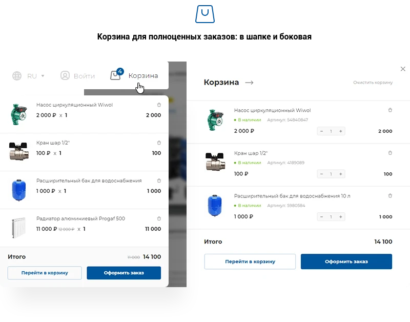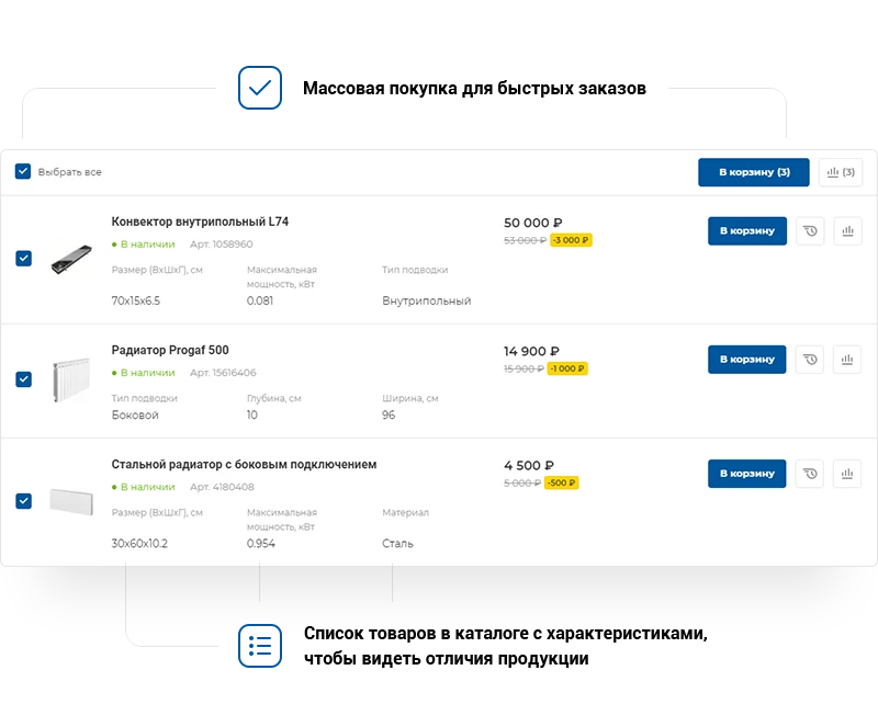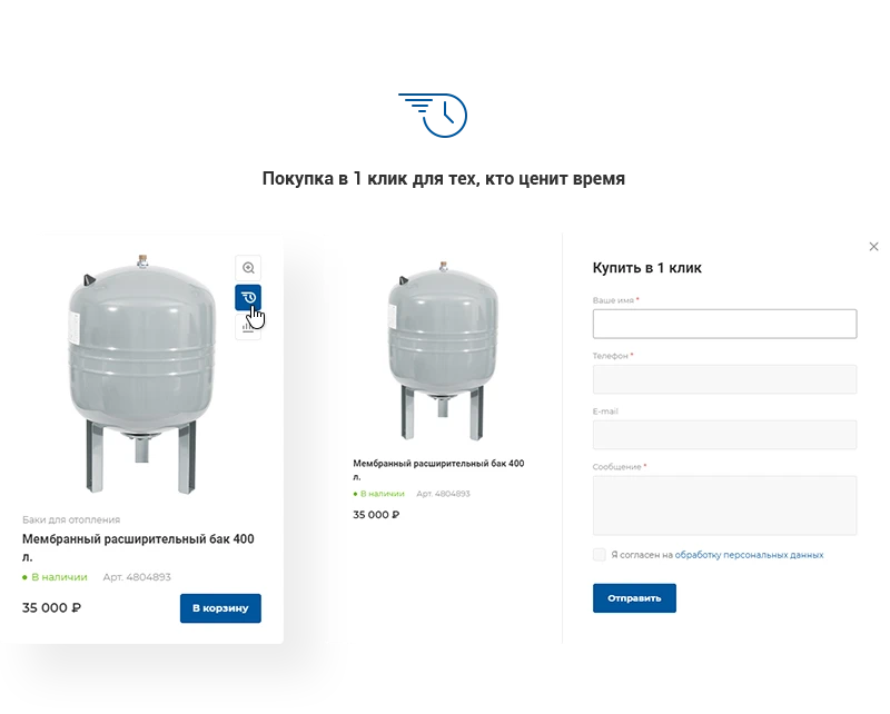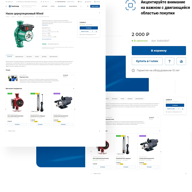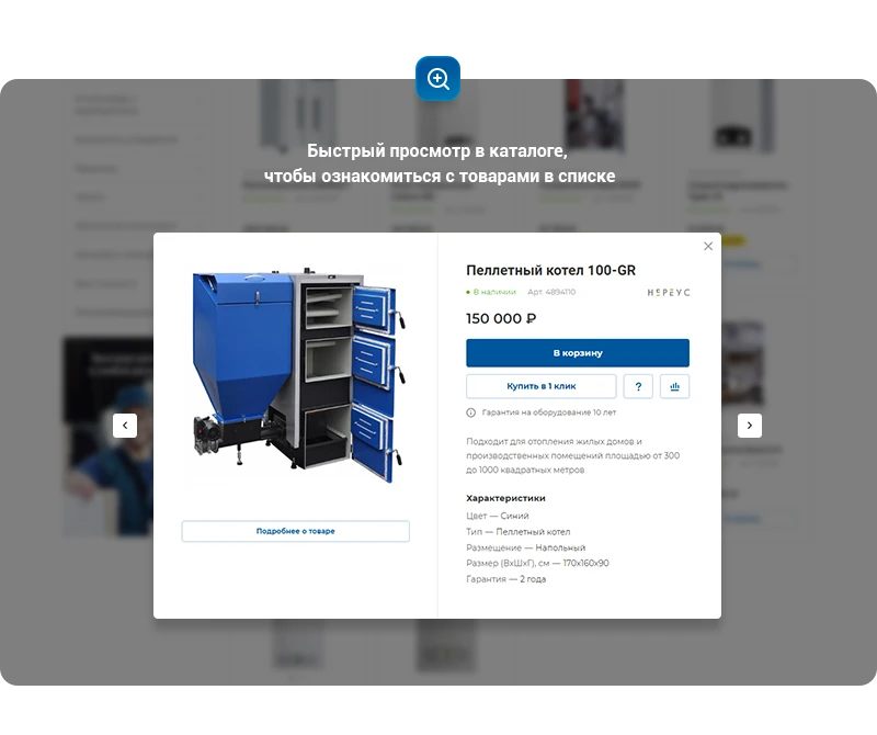 Оформление карточки товара соответствует инженерной специфике. В решении доступно несколько видов отображения продукции для создания индивидуального стиля.