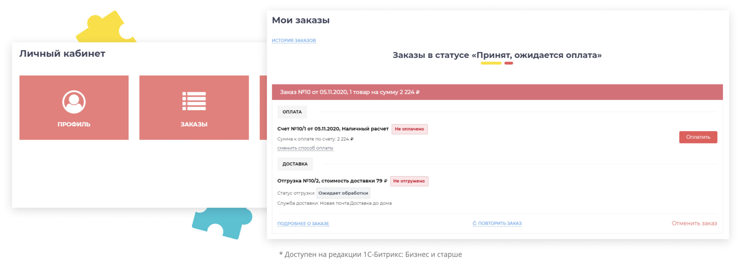 отменять и повторять заказы. А наличие функционала «Личный счет»* позволит вам