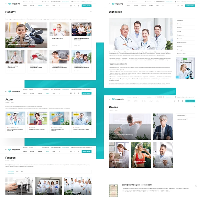 В решении есть все необходимое для сайта частной медицинской компании: от готовых контентных разделов и форм для записи до версии для слабовидящих и набора маркетинговых инструментов.