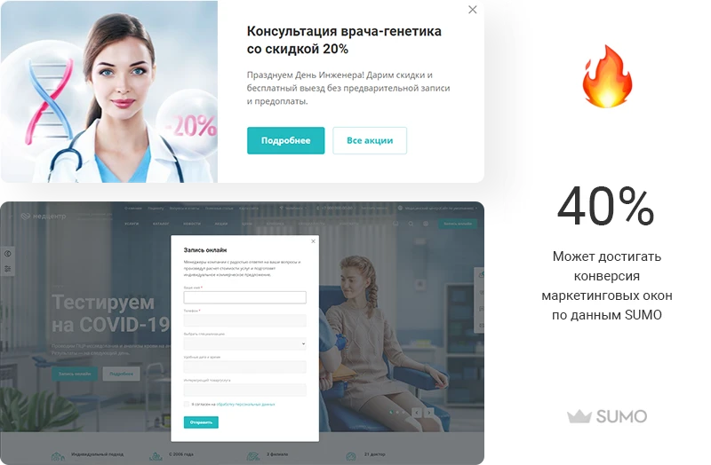 Решение легко адаптируется под сайты смежной тематики — косметологические кабинеты, компании по продаже медицинских товаров и др.